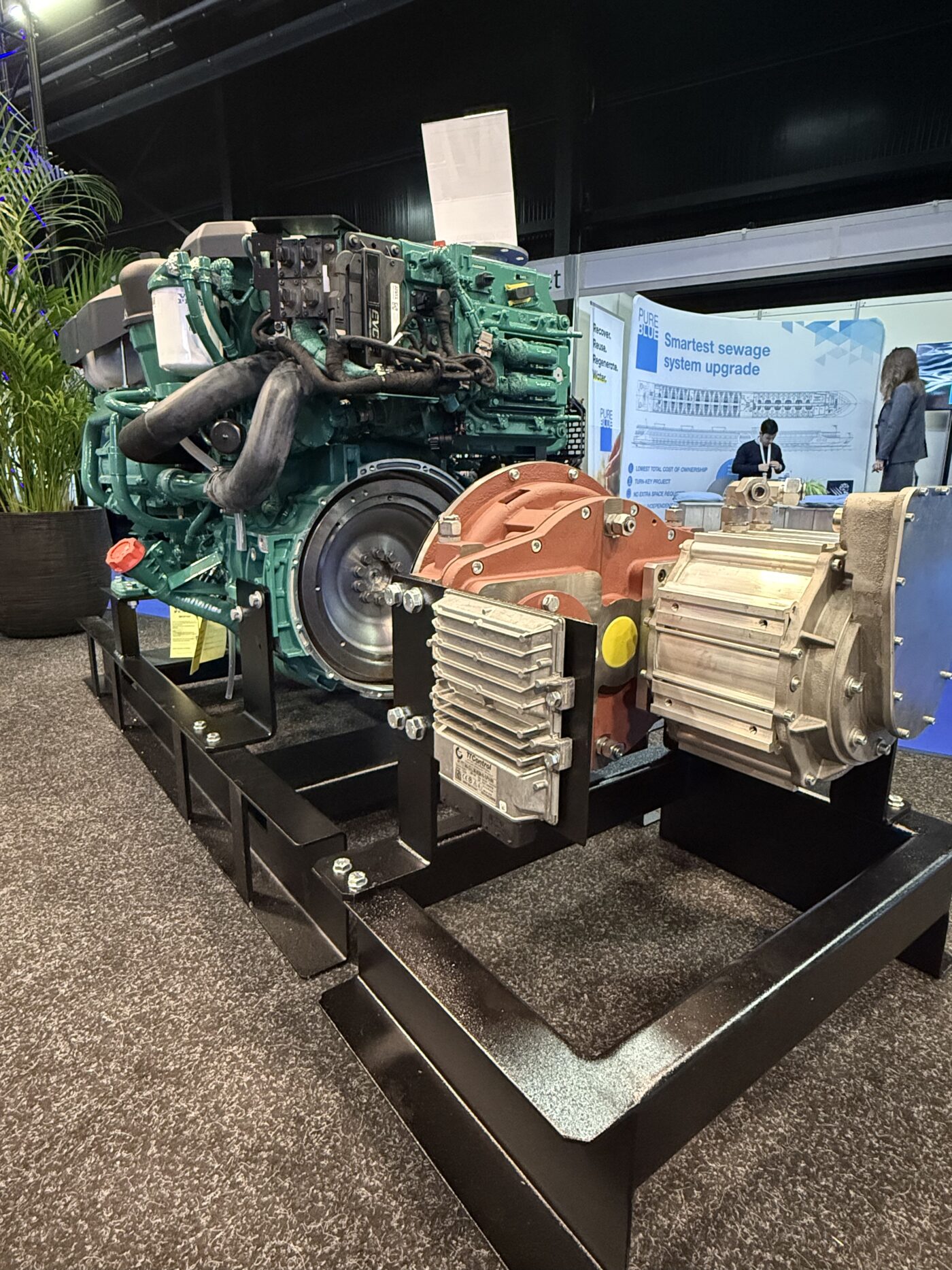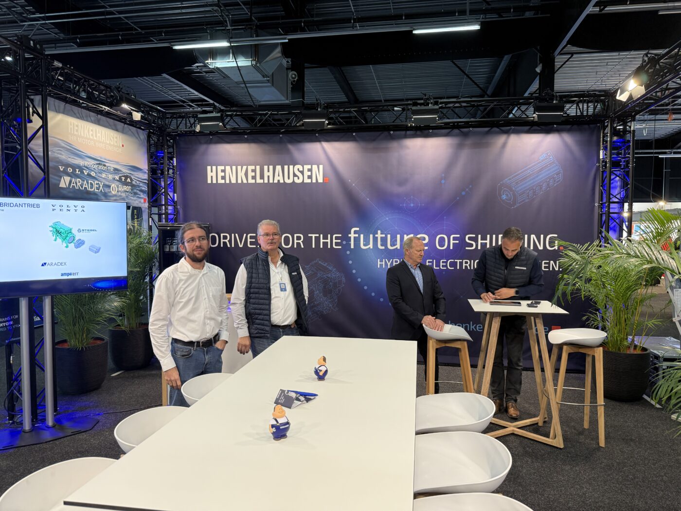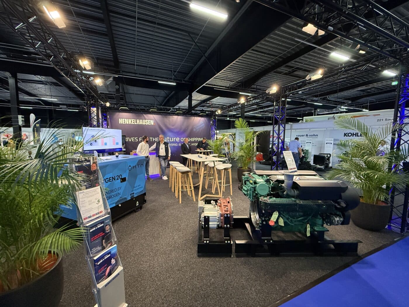 Besonders viel Aufmerksamkeit erhielt unser Parallelhybrid-Konzept auf Basis eines Volvo Penta D8 in Kombination mit einem Elektromotor von Aradex. Auch der HYGEN Stromerzeuger, betrieben mit einem Wasserstoff-Verbrennungsmotor von HTM, stieß auf großes Interesse. Beide Lösungen zeigen, wie vielfältig und zukunftsorientiert moderne Antriebe für die Binnenschifffahrt heute gedacht werden können.